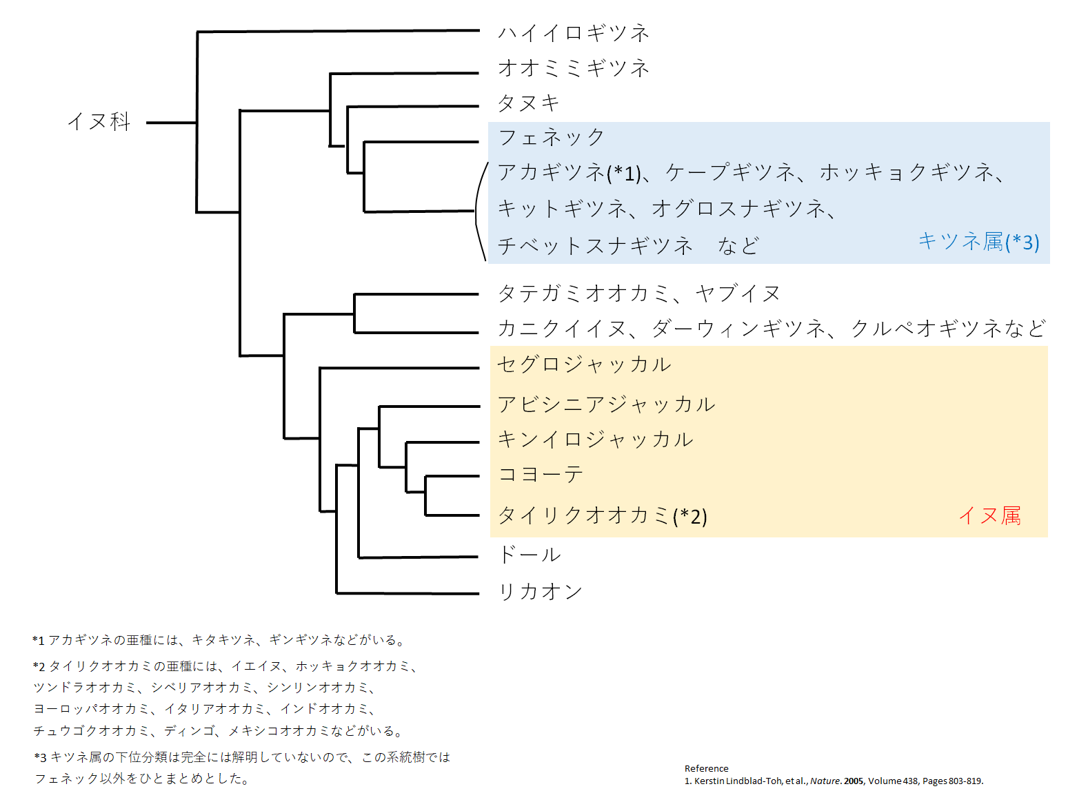 Chelon 最近 けものフレンズ3で系統樹 の話が出たり けものフレンズぱびりおんでイヌ科のフレンズ一覧が紹介されたりしているので イヌ科の系統樹をまとめました 系統樹